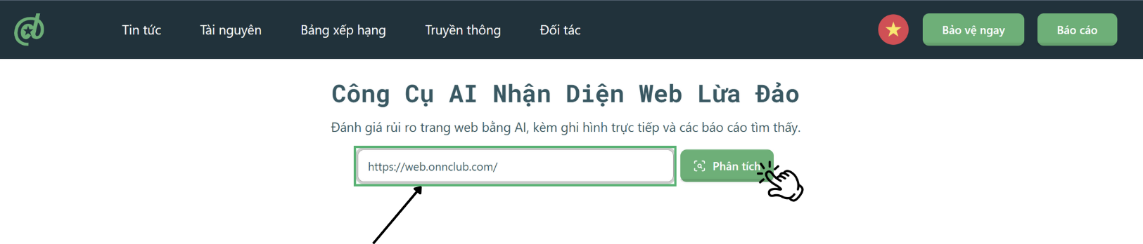 Công cụ AI được xây dựng với mục tiêu giúp người dùng phát hiện sớm các đường link và trang web có dấu hiệu lừa đảo, từ đó chủ động phòng tránh rủi ro. Người dùng chỉ cần dán một URL vào khung kiểm tra, hệ thống sẽ tự động: