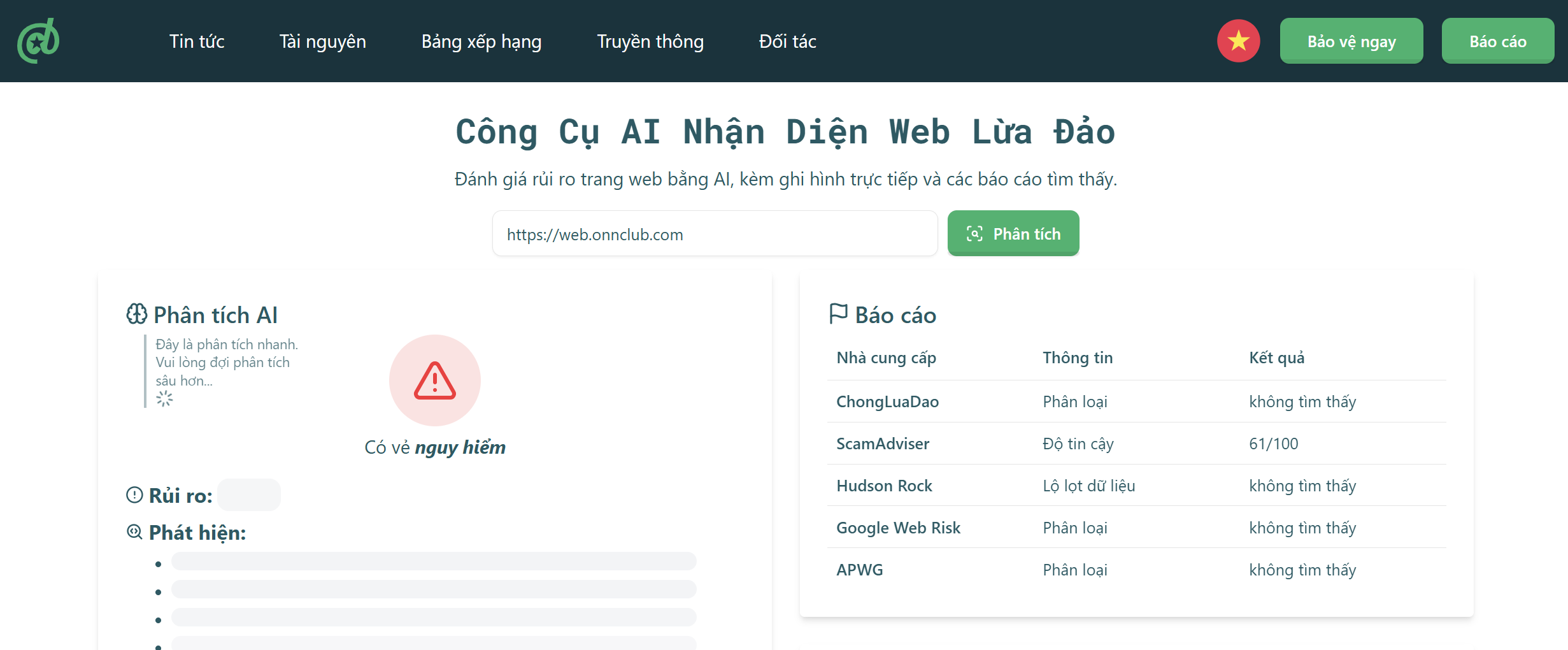 Công cụ hiện đã được tích hợp trực tiếp trên website của Chống Lừa Đảo, giúp người dùng dễ dàng kiểm tra bất kỳ đường link nào trước khi truy cập hoặc cung cấp thông tin cá nhân.