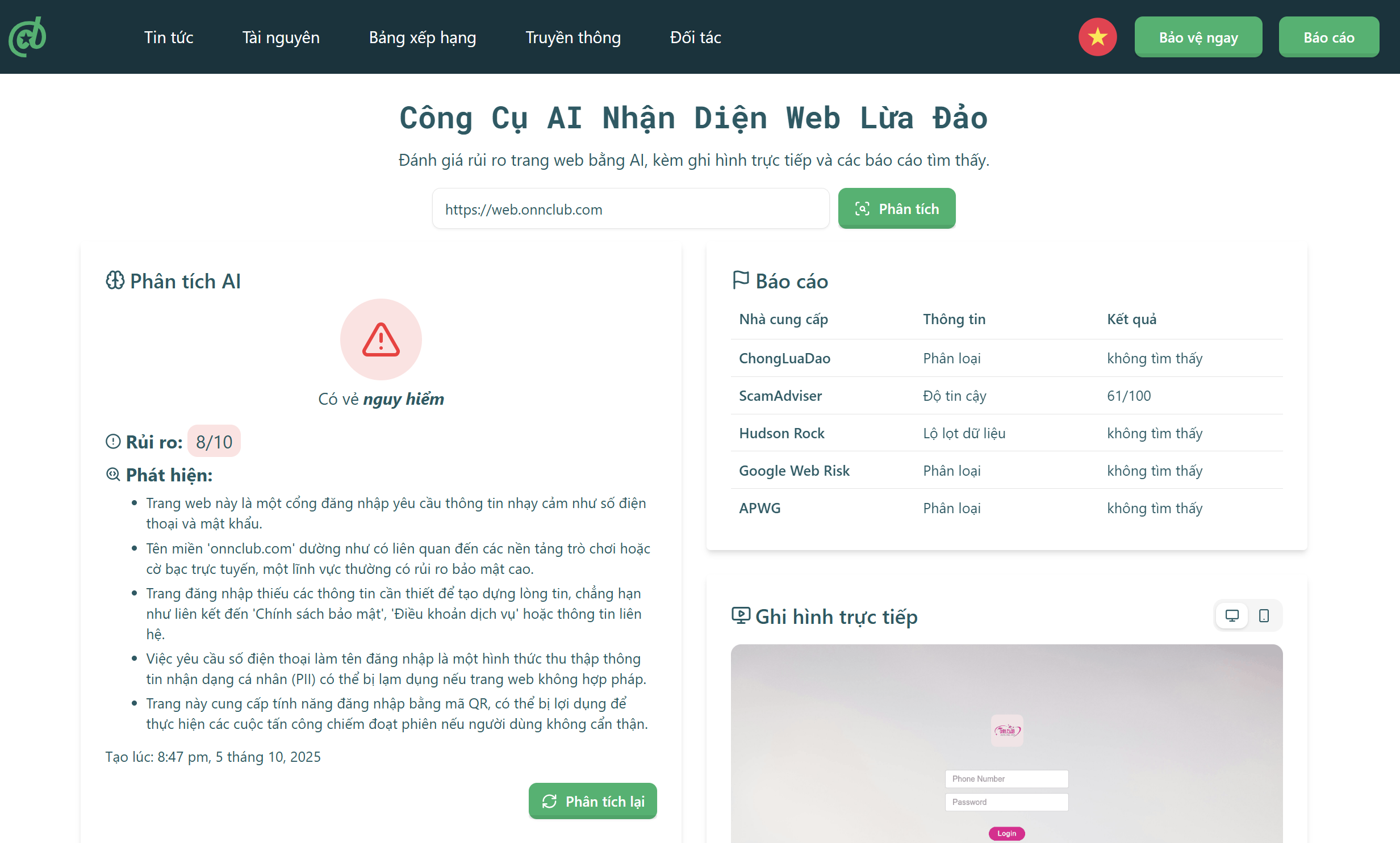 Công cụ không chỉ hỗ trợ người dùng cá nhân mà còn đóng góp dữ liệu hữu ích cho các đơn vị truyền thông, doanh nghiệp và tổ chức an ninh mạng trong công tác phòng ngừa, cảnh báo và xử lý các hành vi lừa đảo trên không gian mạng.